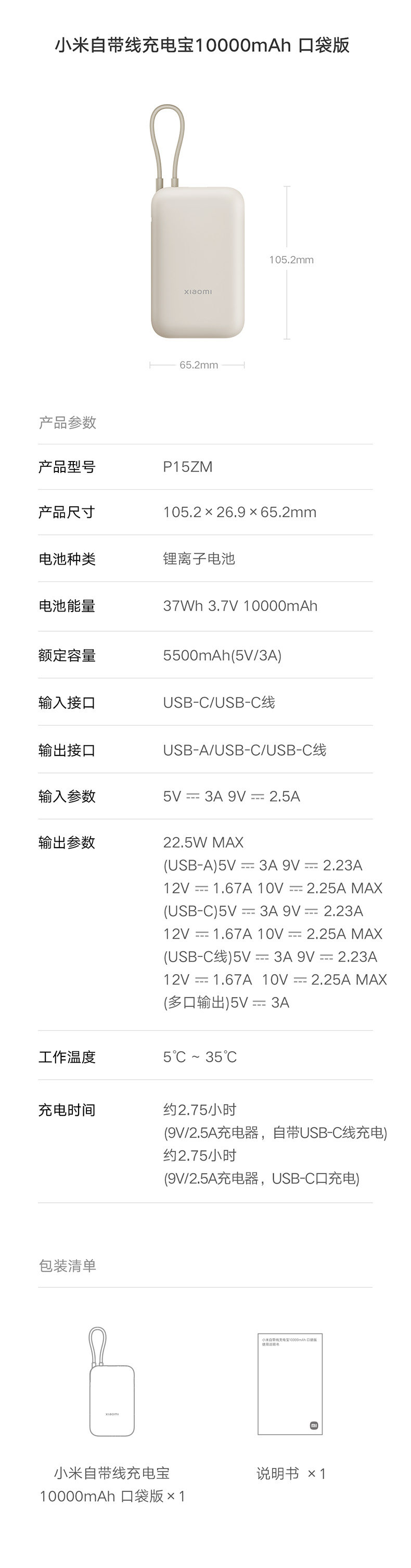 小米10000毫安充电宝